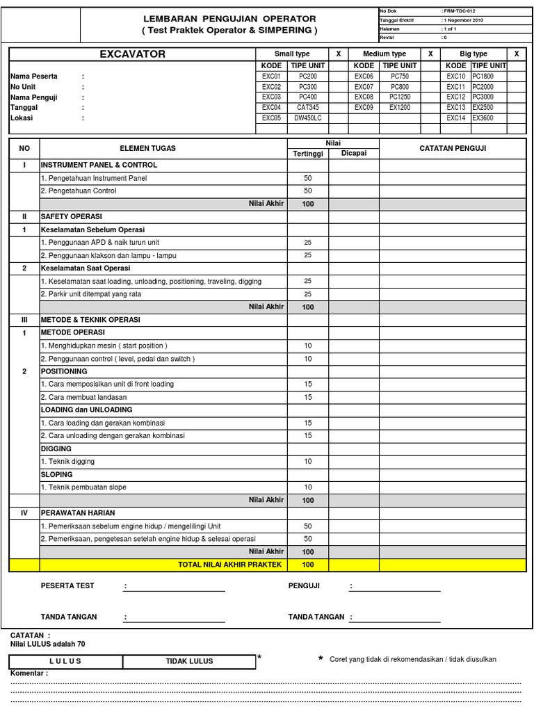 Soal Tes Tulis Operator Excavator Jawabanku Id from imgv2-2-f.scribdassets.com Excavators are indispensable pieces of equipment for general construction and earthmoving. Operate heavy machinery such as backhoes, bulldozers, rollers and graders. Uraian tugas operator excavator memiliki peran untuk memindahkan material reklamasi (pasir) dan untuk mengangkat peralatan dengan bucket tertentu. An excavator is a large piece of machinery used to dig dirt and debris out of construction sites. This course provides students a basic understanding of excavator operation, maintenance and load handling. Plant operator training courses are carefully designed to meet the requirements of the modern industries including, but not limited to oil & gas aitt accredited plant operator training courses include operators for forklift, telehandler, overhead crane, lorry loader, and many other lift trucks. 1 lowongan kerja operator excavator bulan mei 2021. Documents similar to pengujian tes praktek operator excavator.